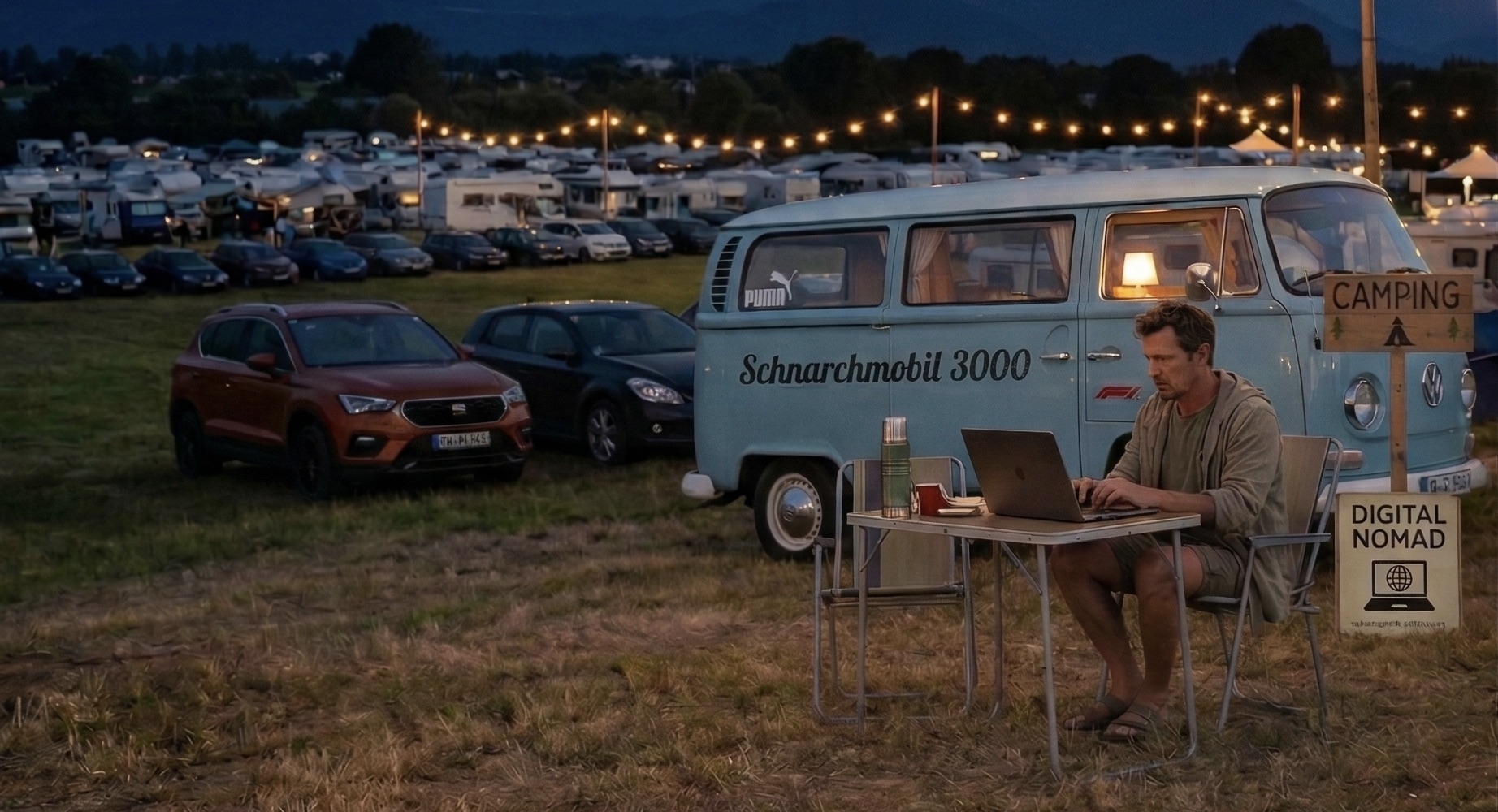 Ich heiße Rennsiegi (ja, wirklich…), mein Camper heißt Schnarchmobil 3000 und meine Mission im Leben ist es… Camping so episch zu erzählen, dass selbst Max Verstappen kurz seinen Motor abstellt und „Gefällt mir“ klickt.