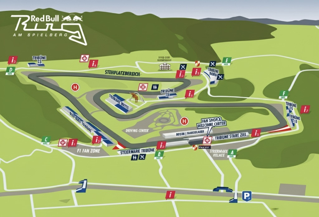 Una vez llegues al haupteingang del Red Bull Ring después de tus relajados 10 minutos, comienza tu camino hacia las tribunas y zonas de pie. ¡Asegúrate de planificar estos tiempos de caminata, los zapatos deportivos son tu mejor amigo aquí!